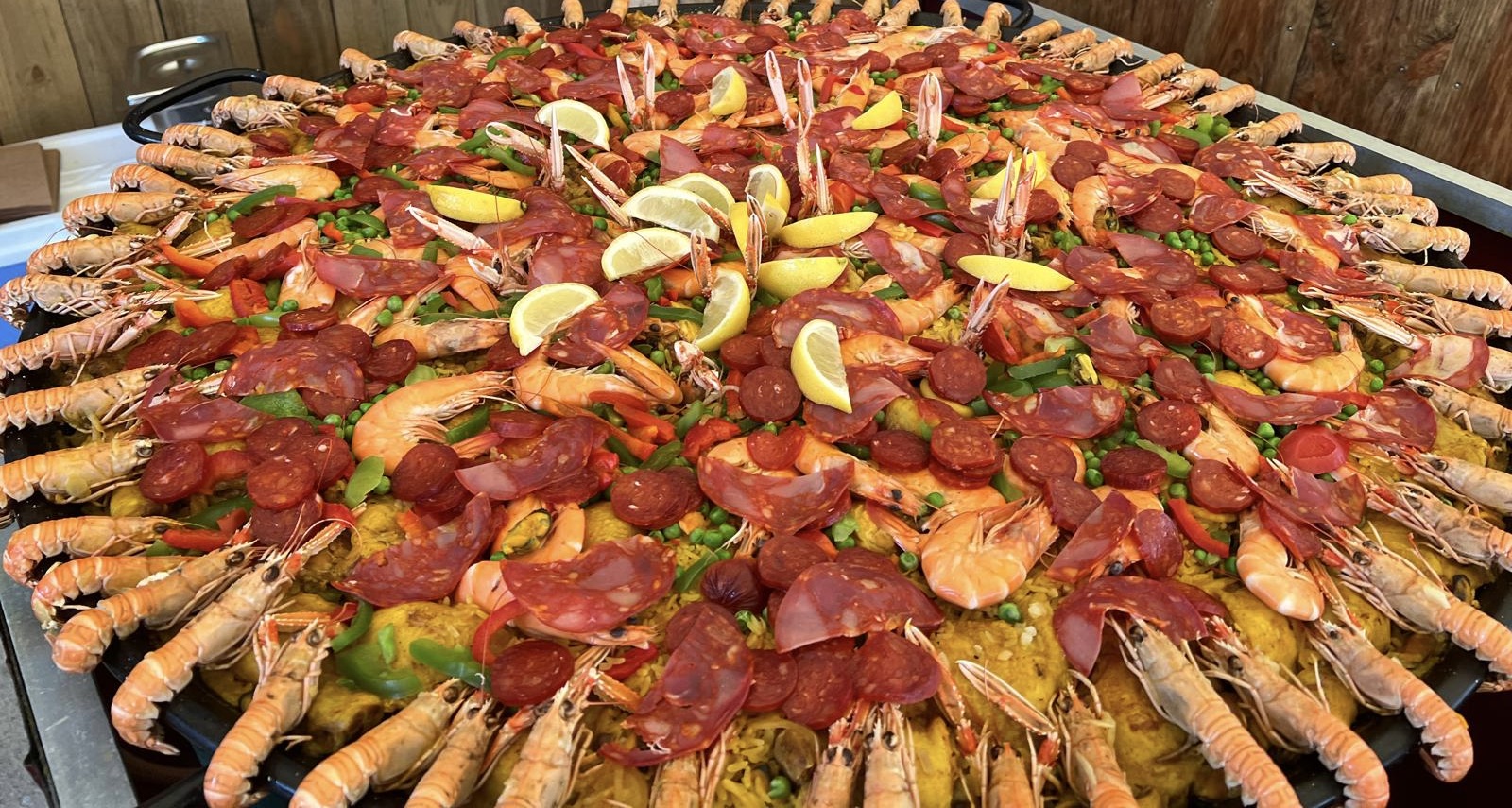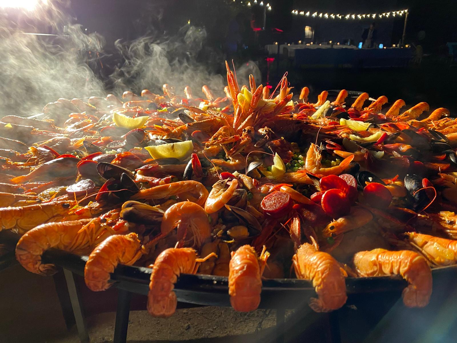 Poulets, fruits de mer, langoustines et riz, cuisinés dans un bouillon safrané, le symbole du partage et le plaisir de manger ensemble.
